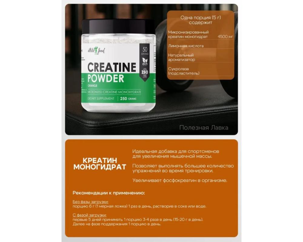 Как действует Creatine Monohydrate от Atletic Food: