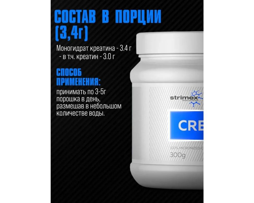 STRIMEX Креатин моногидрат 100% CREABON 300грамм нейтральный