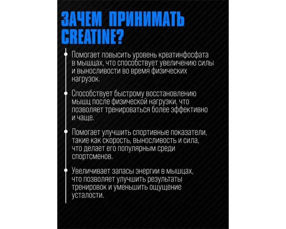 Продукт увеличивает запасы энергии в мышцах, что позволяет улучшить результаты тренировок и уменьшить ощущение усталости.