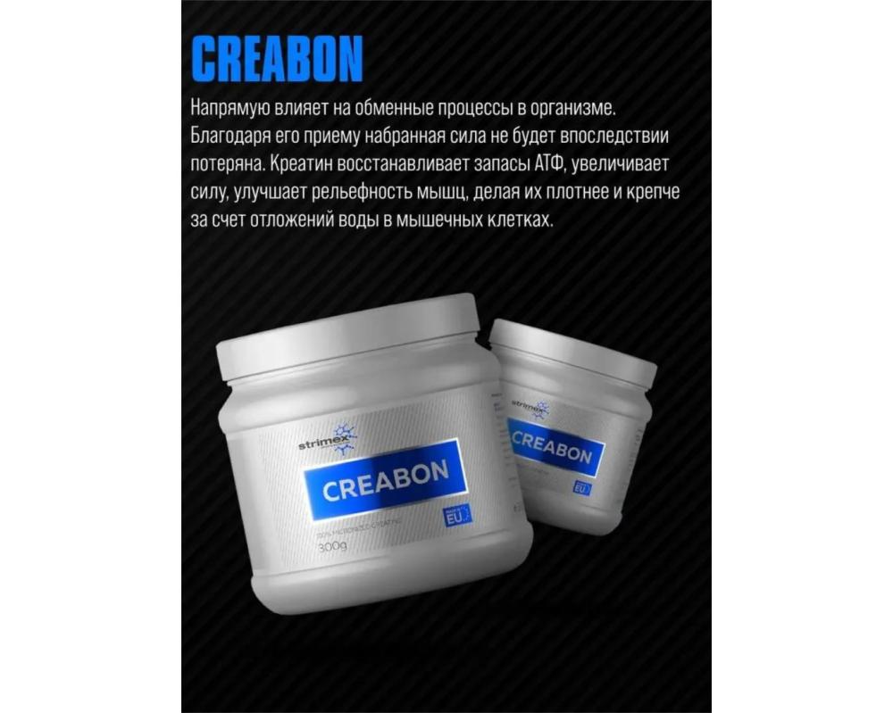 Strimex Creabon 100% Micronized Creatine это качественный порошковый микронизированный моногидрат креатина. Для каждого спортсмена нет ничего лучше, чем хорошо проверенный продукт.