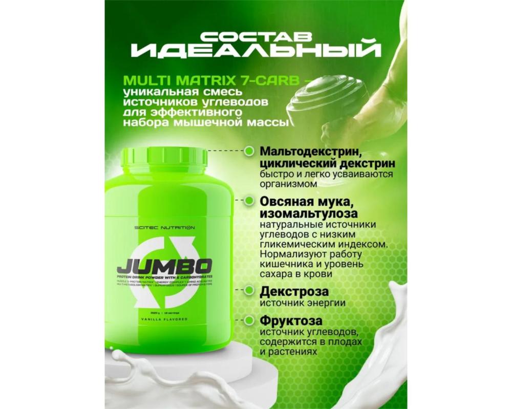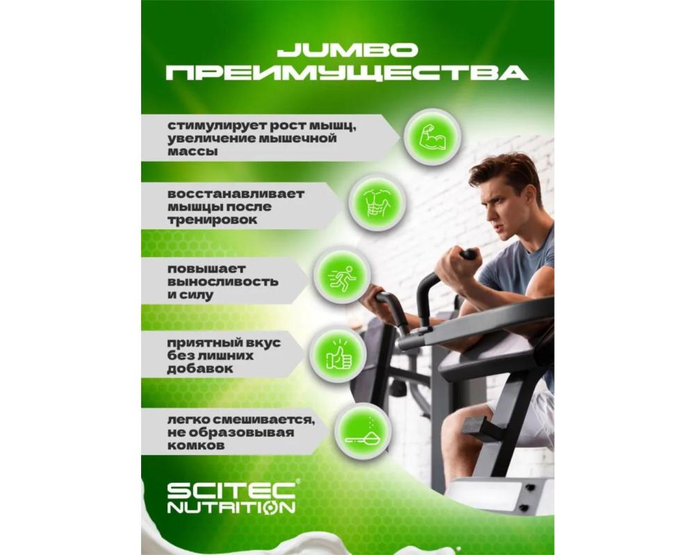 Встречайте Jumbo от Scitec Nutrition — гейнер, который не просто обещает, но и дает результаты. Это не просто добавка — это ваш союзник в достижении мускулистости и силы, которые вы так желаете.
