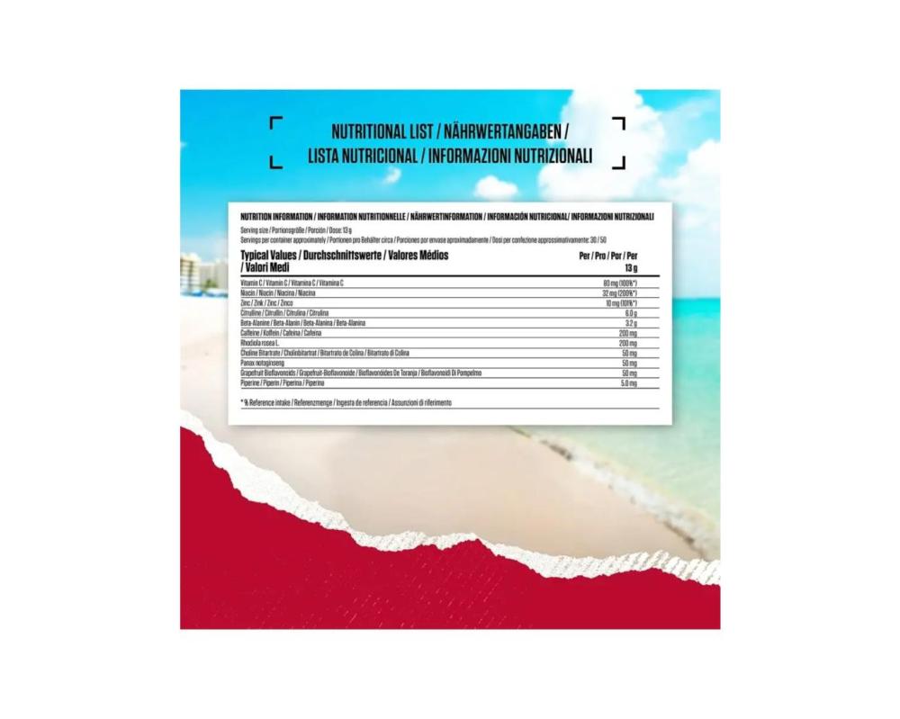 PreWorkout No Xplode содержит 200 мг кофеина, 3,2 г бета-аланина и 6 г цитруллина на порцию.