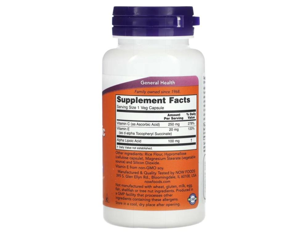 Аминокислота Alpha Lipoic Acid 100mg NOW 60 веганских капсул