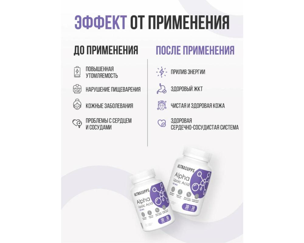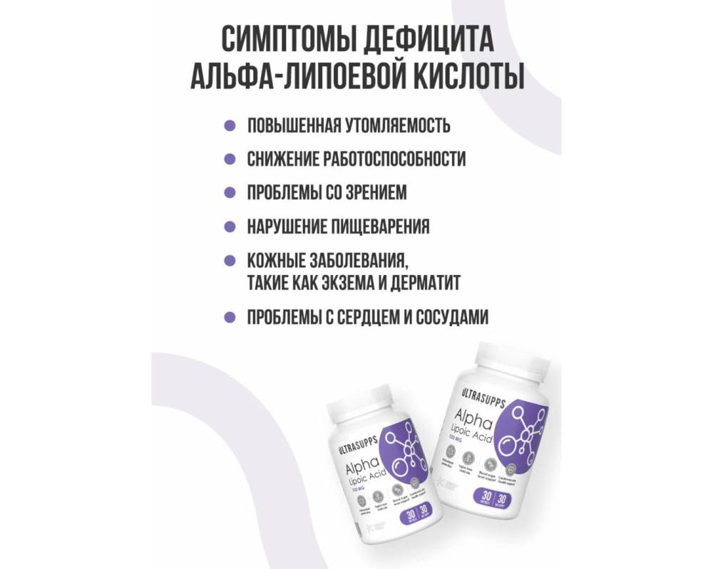 Альфа Липоевая кислота 100 мг ULTRASUPPS 30 мягких капсул
